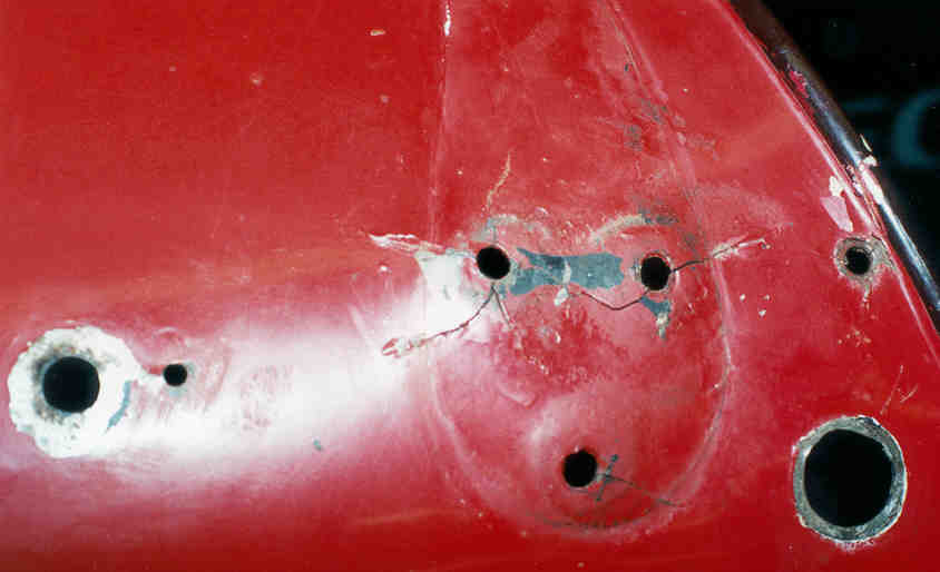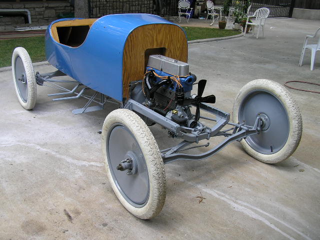 Click on any photo to enlarge, then use your "Back" button to get back to this page The first step in the body restoration was patching of the sheet metal. The body is made of three pieces of sheet metal plus a small trapezoidal piece on the rear deck. The body was rusted out at the bottom from the firewall to the seat back, so patches were welded along the bottom of the cowl and the bottom front portion of the tail sections. The worst area along lower part of the cowl