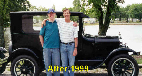have never experienced any distortion with it. Here are a couple of points about the car. In the "Before" photos you will notice the car is black. Most of this appeared to be original paint. The serial number indicated a build date in April, 1926. You will notice the rear window had wood around it. I believe this is indicative of an early 1926 car. In his books and articles, Bruce McCalley indicates that many early 1926 Coupes and Tudors were black rather than the green that was advertised. Our car must have been one of them. Although the upholstery was ragged, there were remnants that showed the green pinstripes. So, the interior was as advertised, but the exterior was black. There was no evidence of a pinstripe on the exterior, but I've seen black '26 Tudors that had a green pinstripe. It makes sense that the pinstripe on the outside should match the interior stripes. The final photos where taken before I had the green pinstripes put on. The green exterior stripe looks very nice with the green striped upholstery. It was a long project, but I feel a lot of pride and satisfaction in the final result. I would like to thank everyone in our club, especially Fred, for all of the help and moral support. After restoring the car, we found that it ran like a dog. It had one of Al Montgomery's 290 lift "Touring grinds". The story of how it became the Cam Project test car is covered in one of our Tech Pages. |