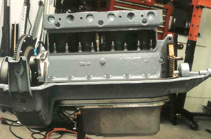 This shows the engine with plumbing and deep sump