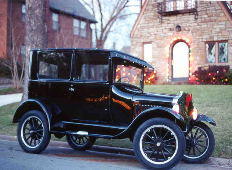 Larry and Sue Young's '26 Tudor, decorated for the Christmas holidays. This is the Cam Project test car (see Technical)