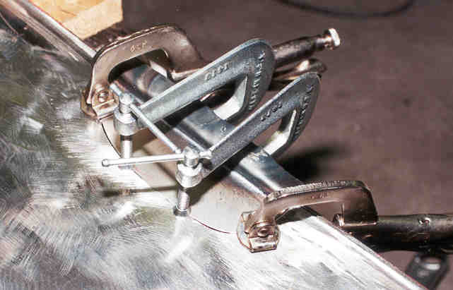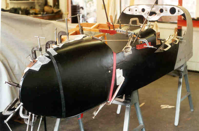 Final mounting of the sheet metal tail. I cemented and nailed the tail section. You can never have enough C clamps.