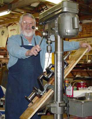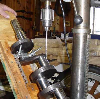 drilling from the journals to the web. The photo below, shows Fred Houston with our homemade fixture