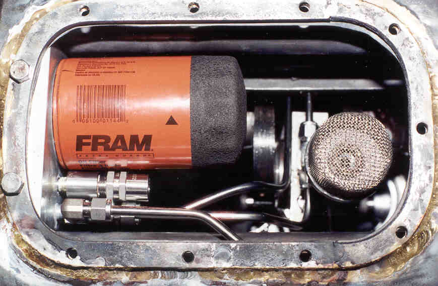 filter in the deep sump. The only external plumbing is the line to the oil